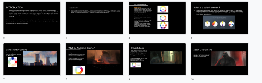 Each course is designed to target in depth portfolio skills for applying to companies. Each class will be held online through discord, there will be a live demo session, each class is 4 hours long and be assigned to a specific instructor. The instructor are highly qualified with experience in the field, will offer life time mentorship.